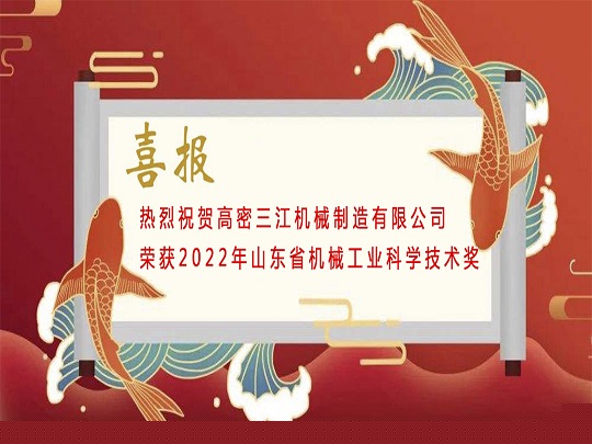 熱烈祝賀高密三江機(jī)械制造有限公司榮獲2022年山東省機(jī)械工業(yè)科學(xué)技術(shù)獎(jiǎng)